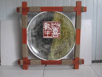 河北省陶瓷艺术大师–宋雅民作品 本作品是作者通过作品的外装饰、方木、麻绳、及画盘里面的甲骨文,汉砖图案,和以篆刻形式表现的文字形成一个整体的创意布局,作者试图表达,人类…