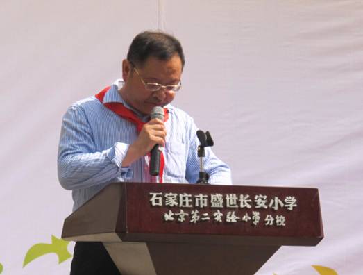 中国陶瓷艺术大师、中国工艺美术大师、河北省曲阳定瓷有限公司董事长、河北省陶瓷玻璃行业协会陈文增副理事长为石家庄市盛世长安小学授牌。