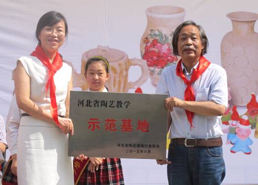 活动开幕式上我协会常务副会长黄杰宣读了对石家庄市盛世长安小学申请设立“河北省陶艺教学示范基地”的批复,并希望盛世长安小学要不断探索,如何在陶艺教学中弘扬陶瓷文化,展现陶瓷艺术教育特色,提升学校办学品位。