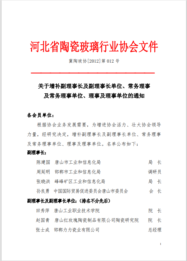 关于河北省陶瓷玻璃行业协会聘任副秘书长的通知