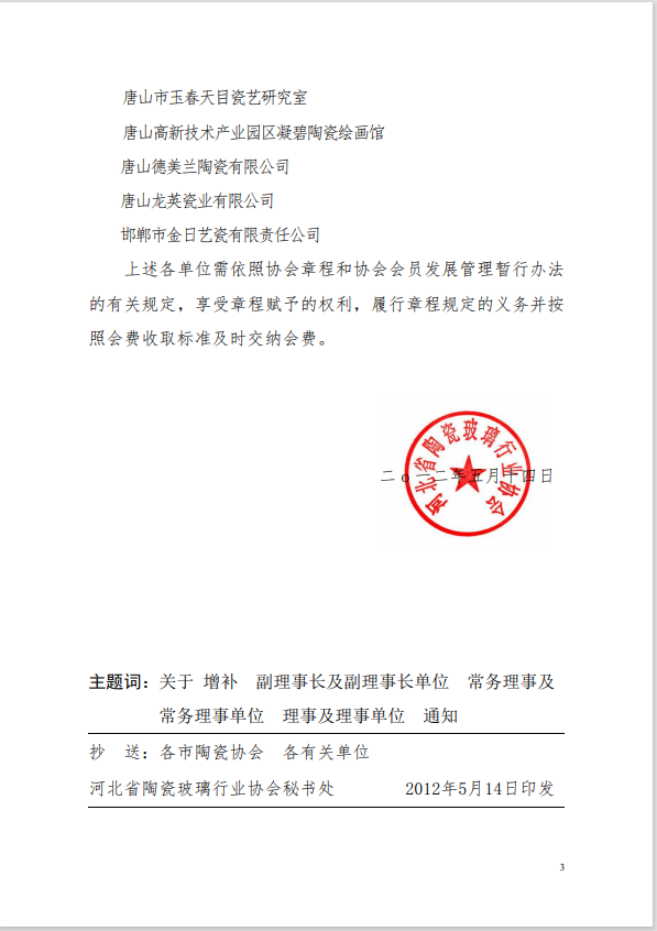 关于河北省陶瓷玻璃行业协会陶瓷艺术专业委员会领导成员调整的通知