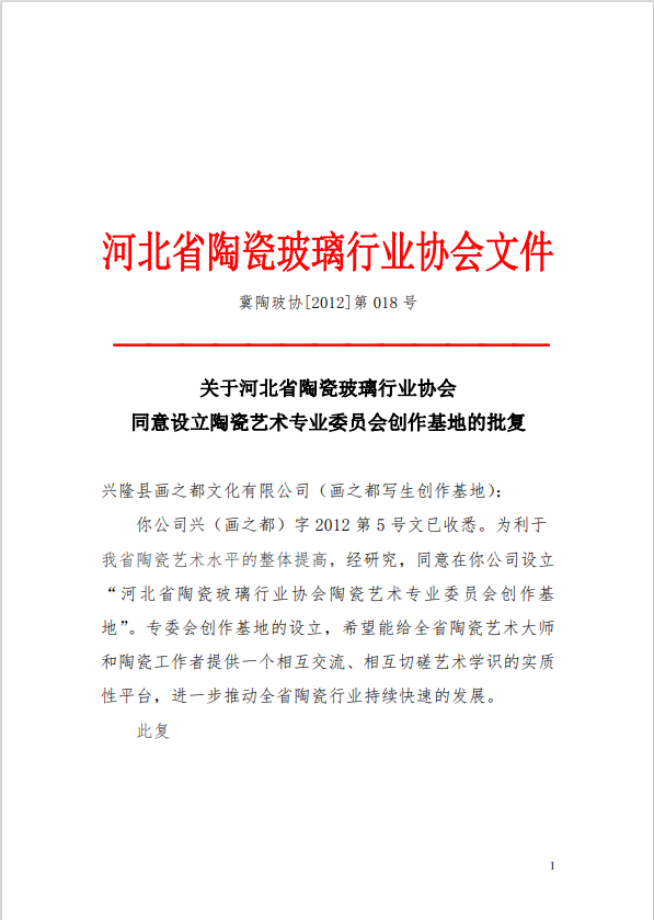 关于河北省陶瓷玻璃行业协会设立陶瓷艺术专委会写生创作基地的通知