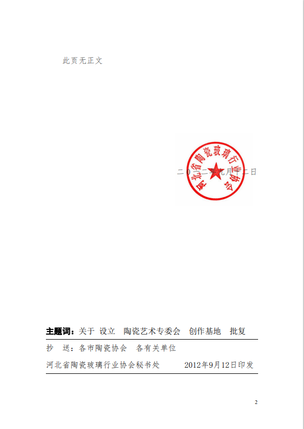 关于河北省陶瓷玻璃行业协会同意设立陶瓷艺术专业委员会创作基地的批复