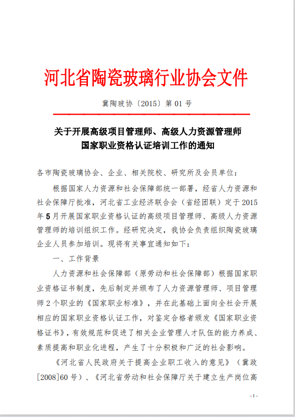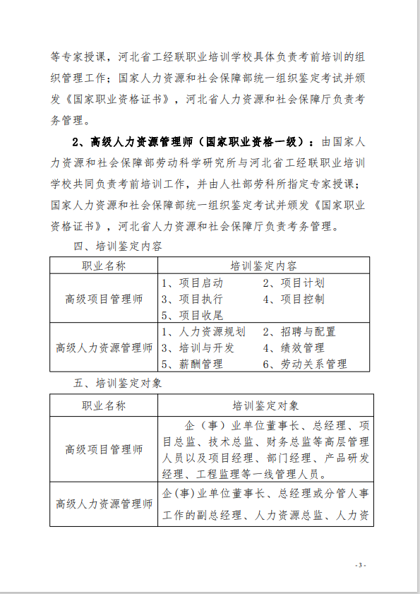 关于开展高级项目管理师、高级人力资源管理师国家职业资格认证培训工作的通知