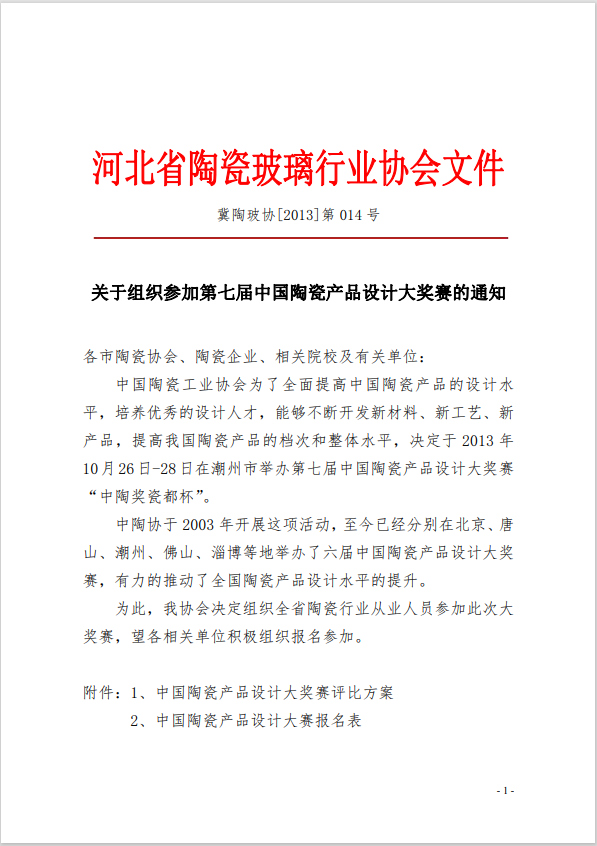 关于组织参加第七届中国陶瓷产品设计大奖赛的通知