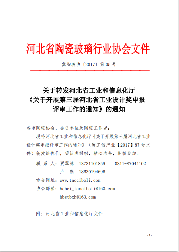 关于转发河北省工业和信息化厅《关于开展第三届河北省工业设计奖申报评审工作的通知》的通知
