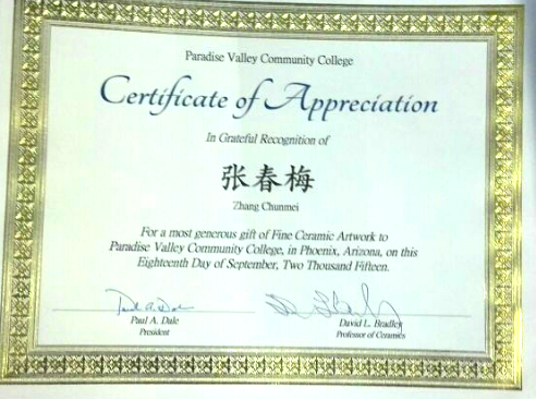 2015年9月,金彩装饰《万福万寿图》在美国凤凰城天堂谷学院举行“当代中国陶瓷艺术大展”,深受美国艺术家们的好评及收藏。