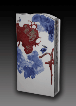 创意与工艺:此镶器瓶是采用综合装饰的手法,运用釉里红的工艺特点制作完成的。作品以中国书法的独特视角和对线条的理解,合理运用青花釉里红的工艺特点,结合文人画的笔墨技法,合理布局,突出瓷器的美感和釉里红独特的质感,体现作者对陶瓷语言的把握上还是有追求的方向。