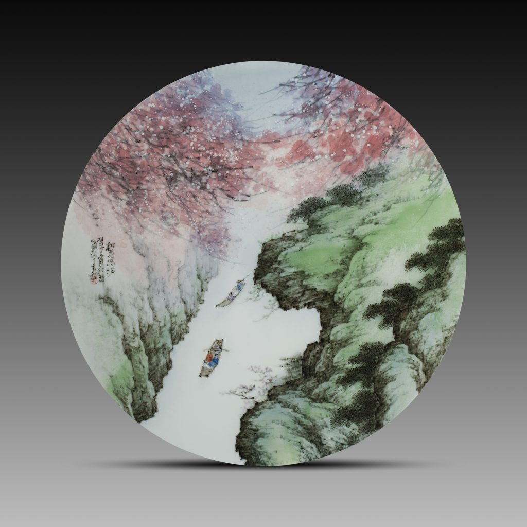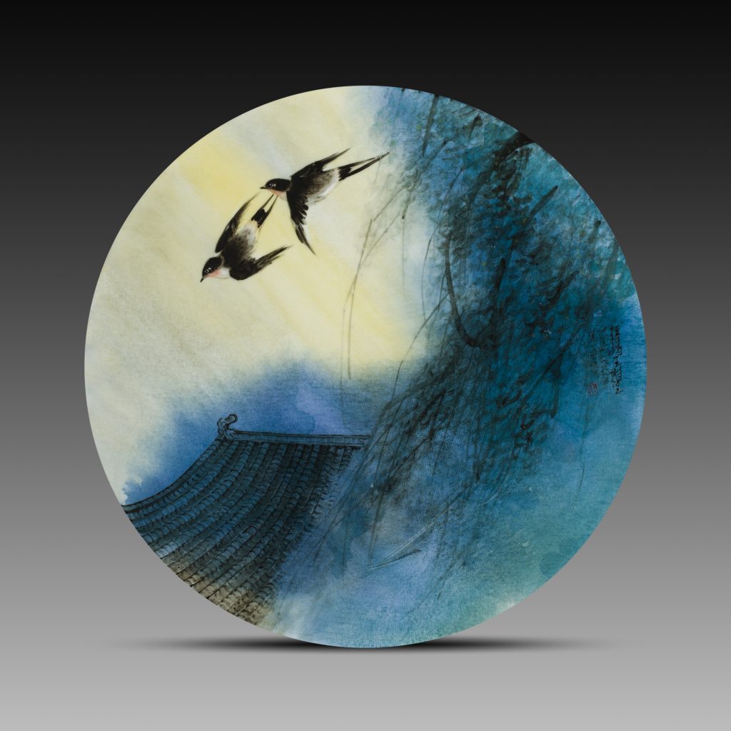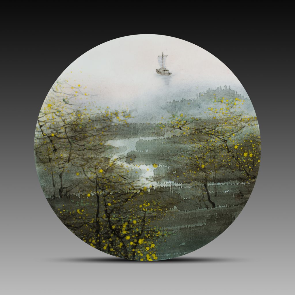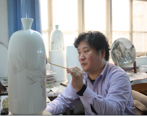 不觉从事陶瓷艺术创作已近三十载。驻足陶瓷艺术领域,借笔墨之道,寻天性本心,其甘苦自知。余从中国画历史悠久的传统技法着手,探求山水,花鸟在陶瓷上的创作,因而对墨色的韵味,线条的各种变化有着较深的感受。宋人用笔变化多端,棱角拙重而又坚挺,中侧并用,刚柔并用,因而险岩巨嶂,层峦起伏,凝厚而浩然气生,实令吾辈叹为观止。然明、清大家的画味,疏散的线条、笔墨的变化,亦让吾流连忘返。