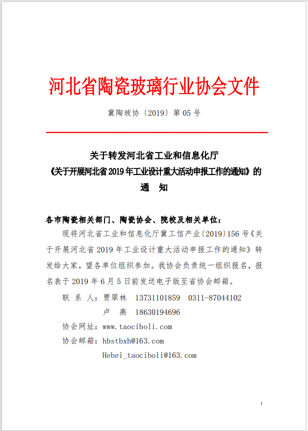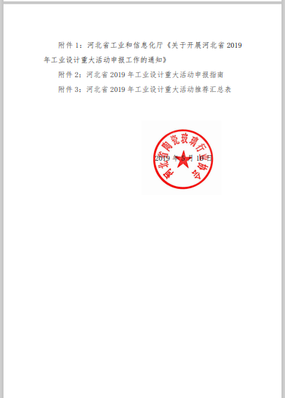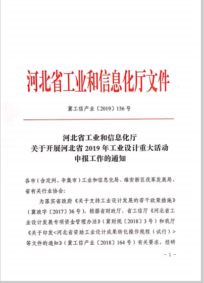 关于转发河北省工业和信息化厅《关于开展河北省2019年工业设计重大活动申报工作的通知》的通知