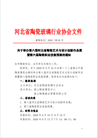 关于举办第六届河北省陶瓷艺术与设计创新作品展暨第六届陶瓷职业技能预赛的通知