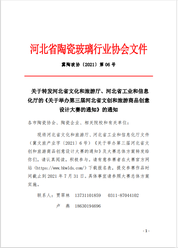 关于转发河北省文化和旅游厅、河北省工业和信息化厅的《关于举办第三届河北省文创和旅游商品创意设计大赛的通知》的通知