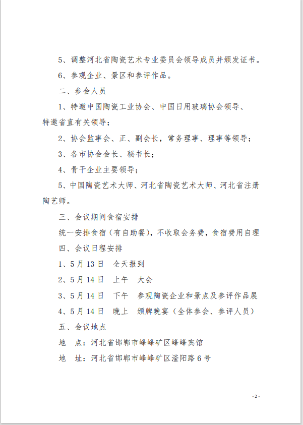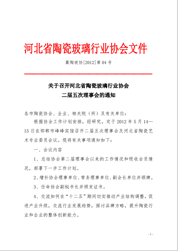 关于召开河北省陶瓷玻璃行业协会二届五次理事会的通知