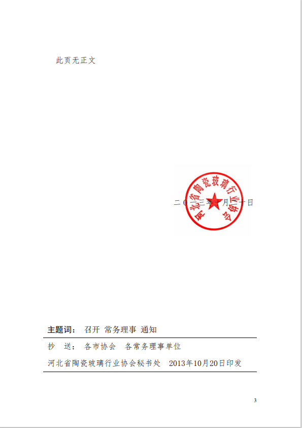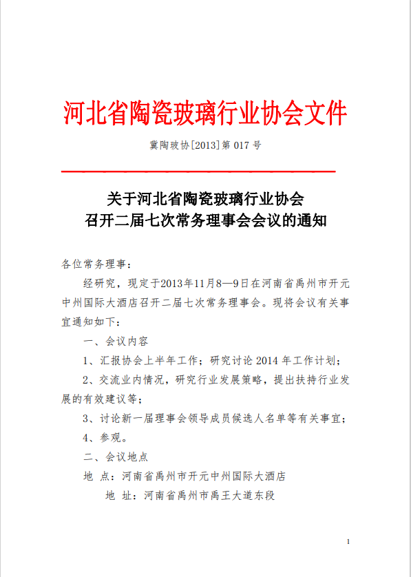 关于河北省陶瓷玻璃行业协会召开二届七次常务理事会会议的通知