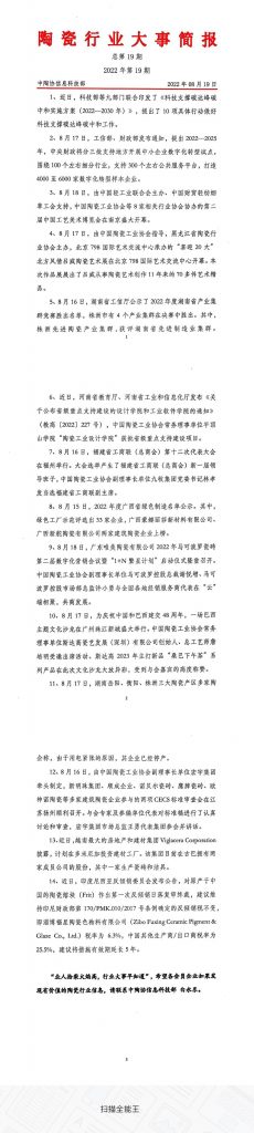 陶瓷行业大事简报总第19期2022年第19期